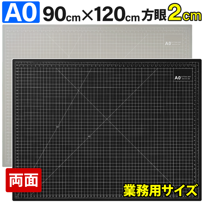 カッティングマット A0 サイズ 90cm x 120cm x 3mm 2cm方眼 特大 両面メモリ 業務用 カッターマット大判 デスクマット【ブラック / グレー】両面目盛り 切り出し
