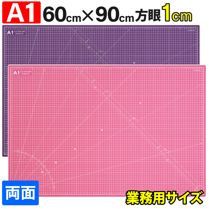 カッティングマット A1 サイズ 60cm x 90cm x 3mm 1cm方眼 特大 両面メモリ 業務用 工作 カッターマット大判 デスクマット ピンク 紫 両面目盛り 切り出し