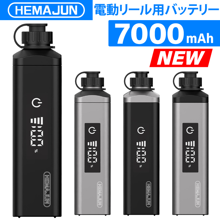 【1年保証】公式 HEMAJUN (ヘマジュン) 電動リール用バッテリー 7000mAh 14.8V 充電器 ケーブル ポーチ付 DX70 ダイワ/シマノと互換性あり 電池残量機能付き