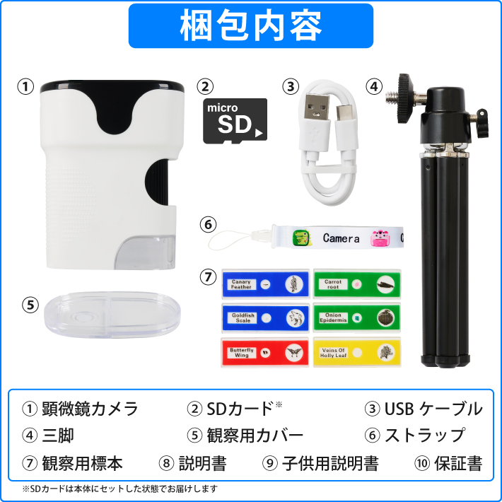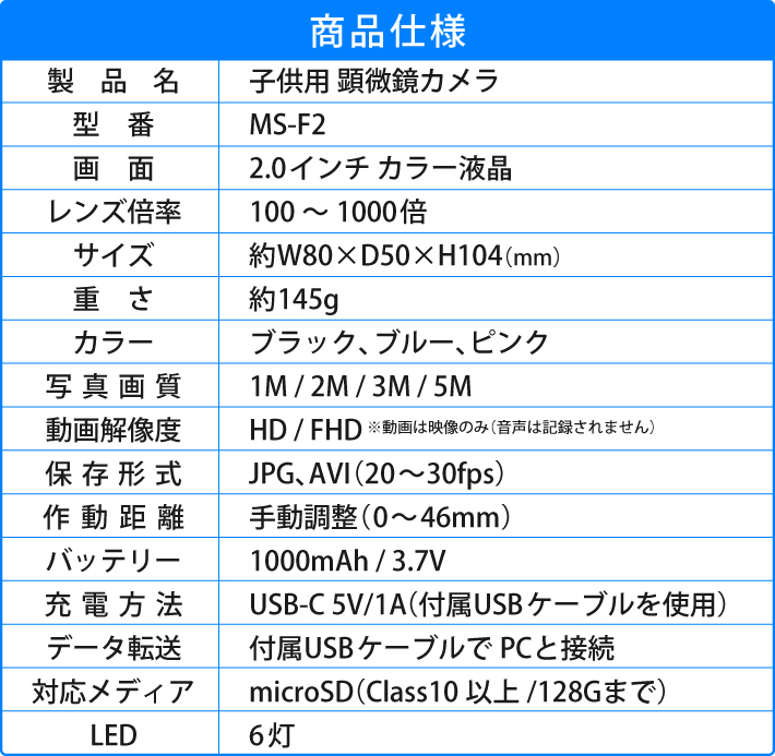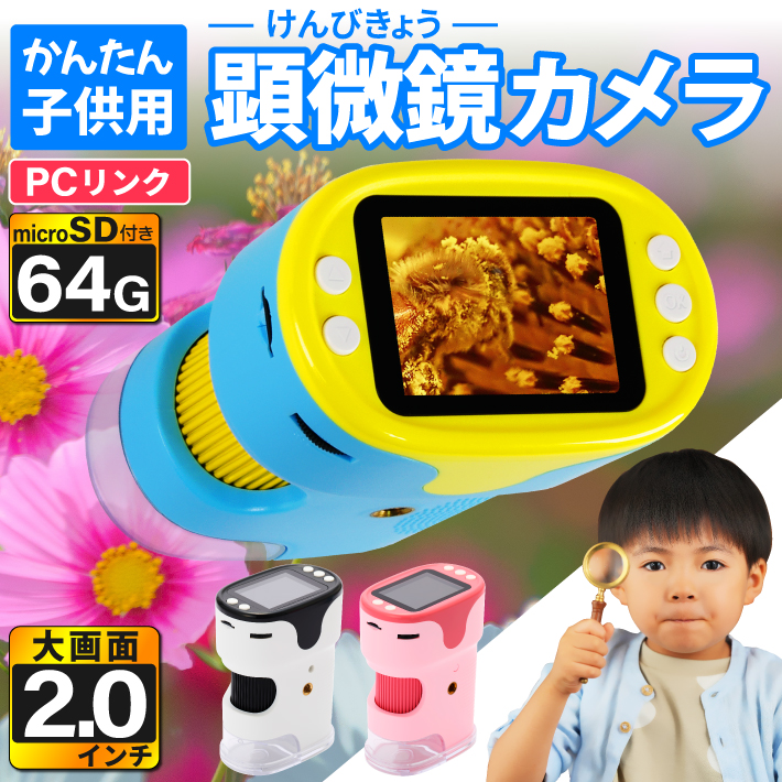 子供用 顕微鏡 カメラ 100-1000倍 ハンディー 小学生 充電式 コードレス 電子顕微鏡 マイクロスコープ 倍率調整 自由研究 植物の観察 生物観察 64G SDカード付