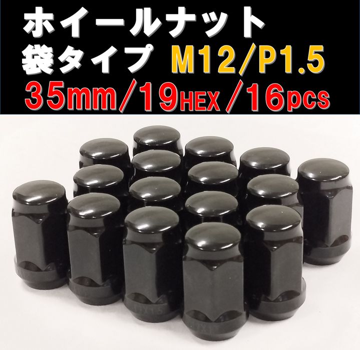 ホイールナット 袋タイプ ブラック M12×1.5 19HEX 16個セット ホンダ トヨタ マツダ ダイハツ レクサス