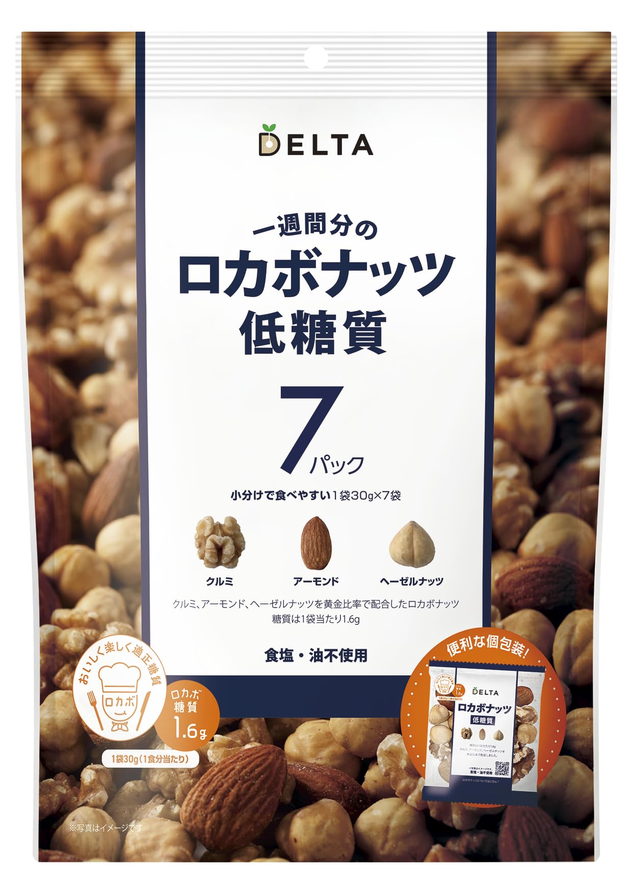 商品名:[ デルタインターナショナル 公式 ] 一週間分のロカボナッツ 30g×7袋 ( 低糖質 )【 ロカボ で おいしくカラダと心を満たす 】素焼き 無塩 ナッツ