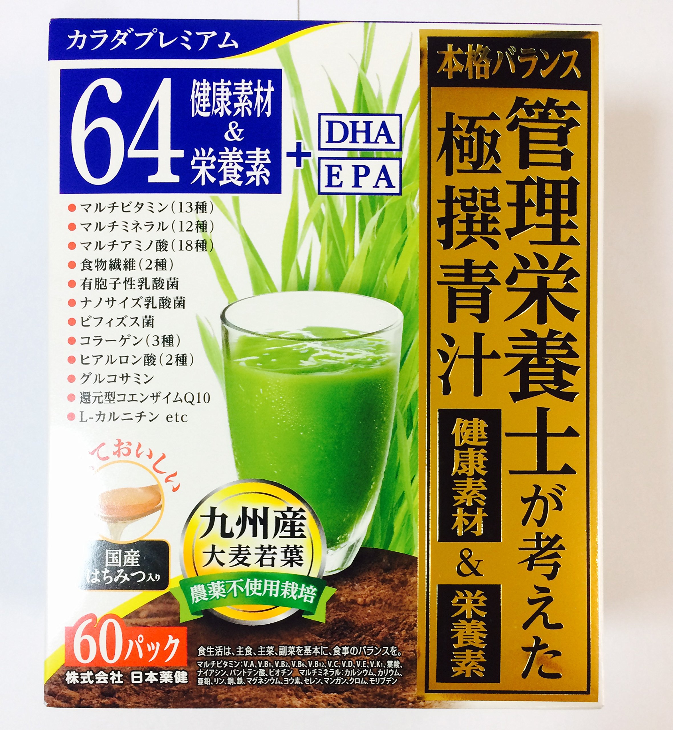 食物繊維やマルチビタミン、ミネラル、乳酸菌などの健康素材と栄養素が入っています。