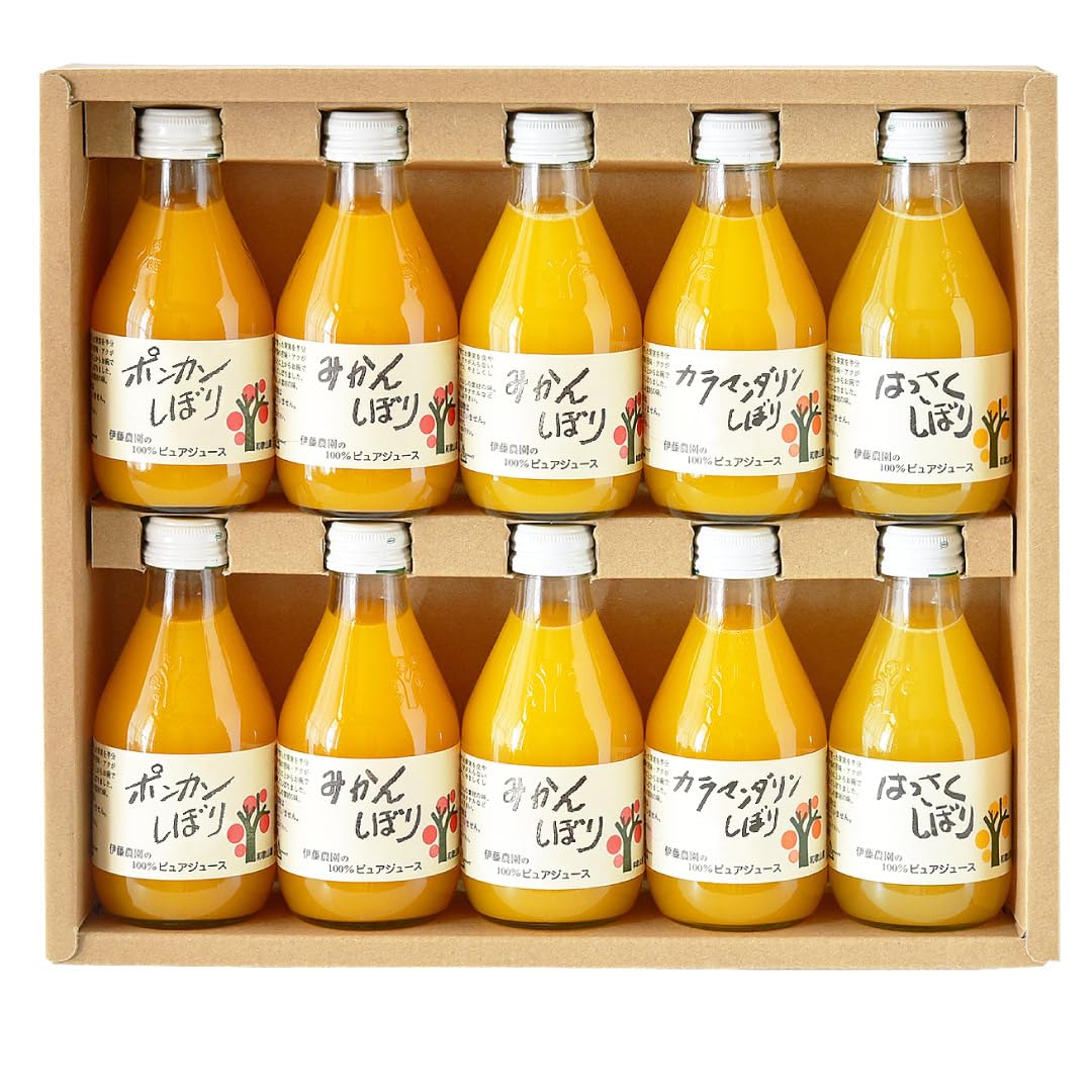 商品名:伊藤農園 みかんジュース オレンジジュース 100% 無添加 ストレート セット 和歌山 有田 100パーセント 詰め合わせ 甘い 贈答用 手土産 まとめ買い 瓶 [ みかん 八朔 カラマンダリン セミノール ] 180ミリリットル (x 10)