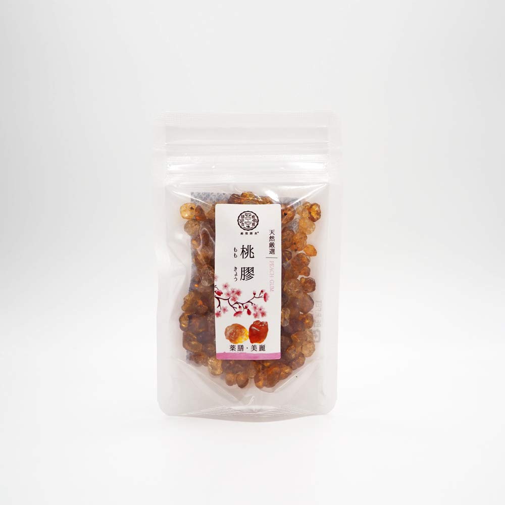 桃膠(とうきょう)とは桃の木から分泌された半透明の樹脂のことです。 日本ではあまり知られてないようですが、古来「桃の花の涙」とも言われた天然樹液です。 天然の桃の樹脂は真珠の粒ぐらいの大きさがあり、綺麗な琥珀色のものが一般的です。癒雅の桃膠は成分流出しないよう、桃の木から採った樹脂を直ぐに天日干しさせ無添加に仕上げております。 水で戻すと、10倍ぐらいになります。 白キクラゲや牛乳とあわせてデザートスープ