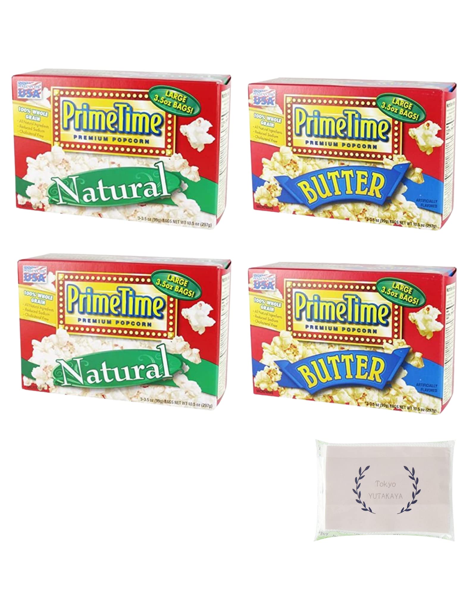 商品名:レンジでポップコーン プライムタイム マイクロウェーブ ポップコーン 塩味 3P、 バター味 3P 各2点計4点 オリジナルペーパー