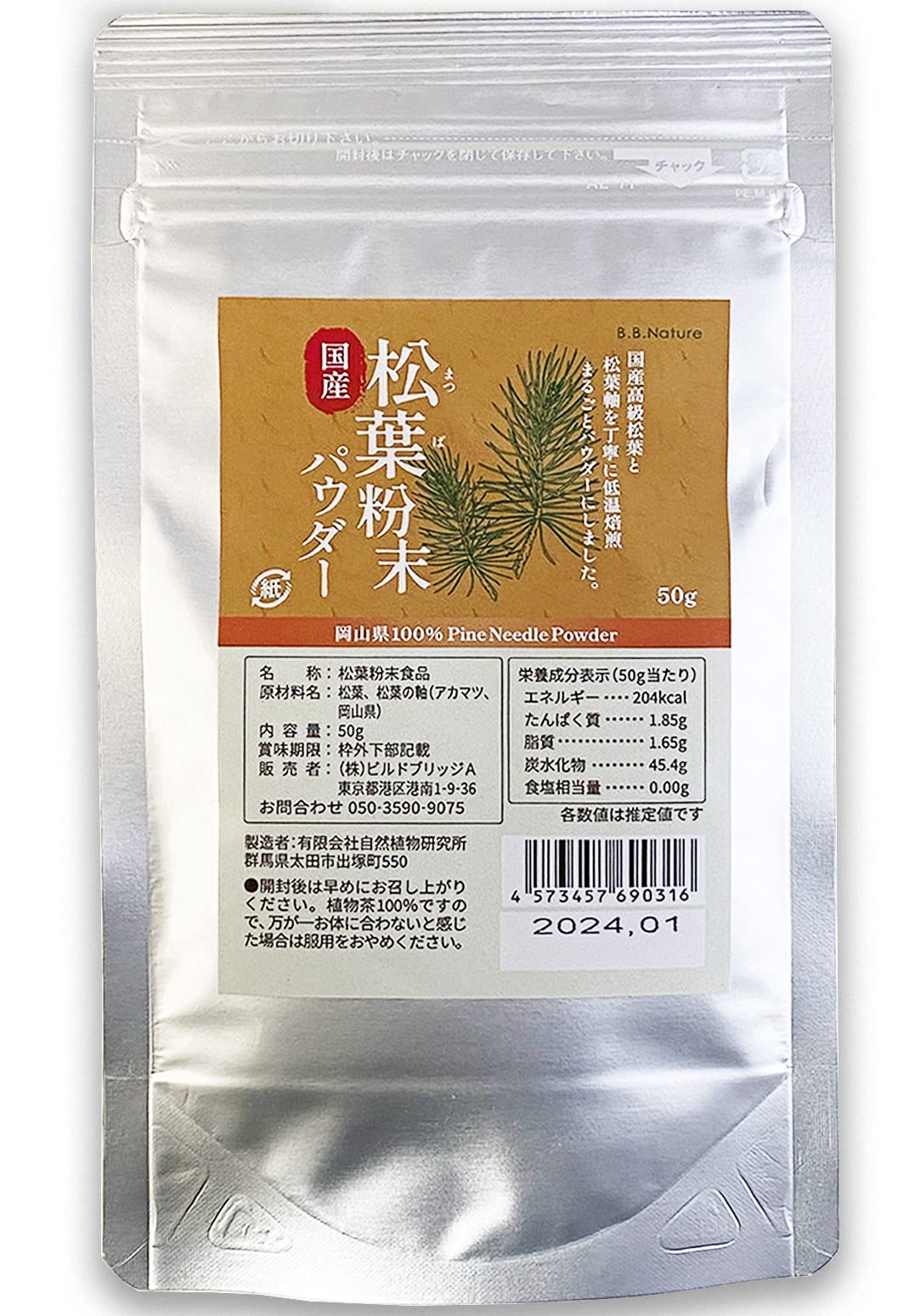 B.B.Nature 松葉茶 国産 無農薬 残留農薬検査済 放射能検査済 岡山県 赤松 (粉末パウダー, 50g)