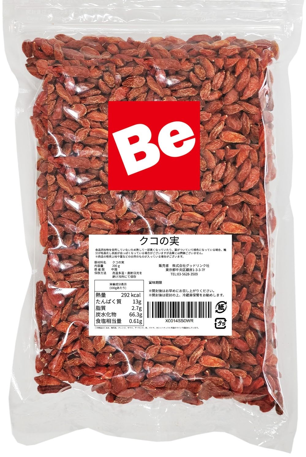 商品名:クコの実 ゴジベリー 枸杞の実 無添加 くこの実 国内選別 残留農薬検査済 チャック付き袋 200g