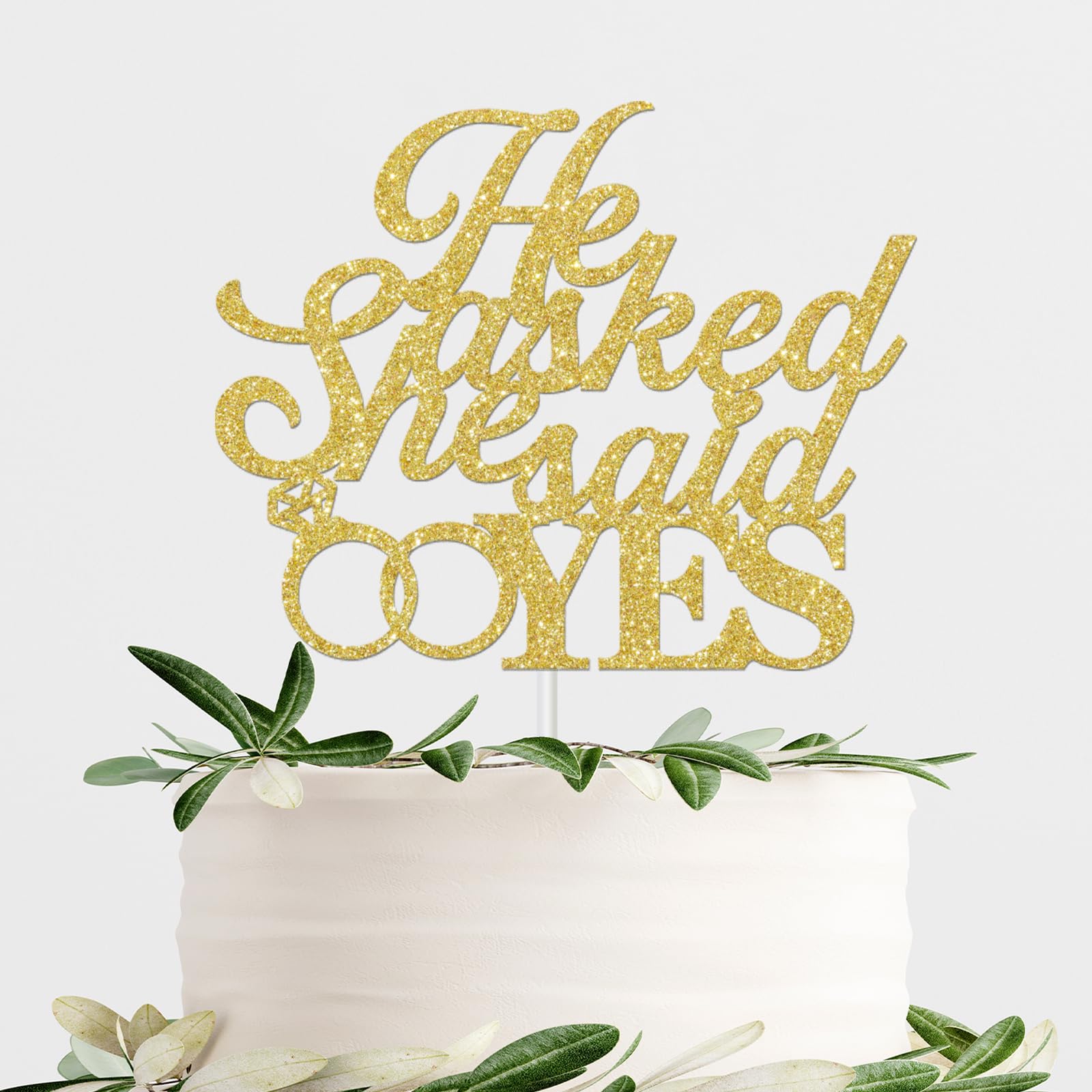 ShuanQ He Asked She Said Yes ケーキトッパー - 結婚式/婚約/ブライダルシャワー/プロポーズパーティーデコレーション -