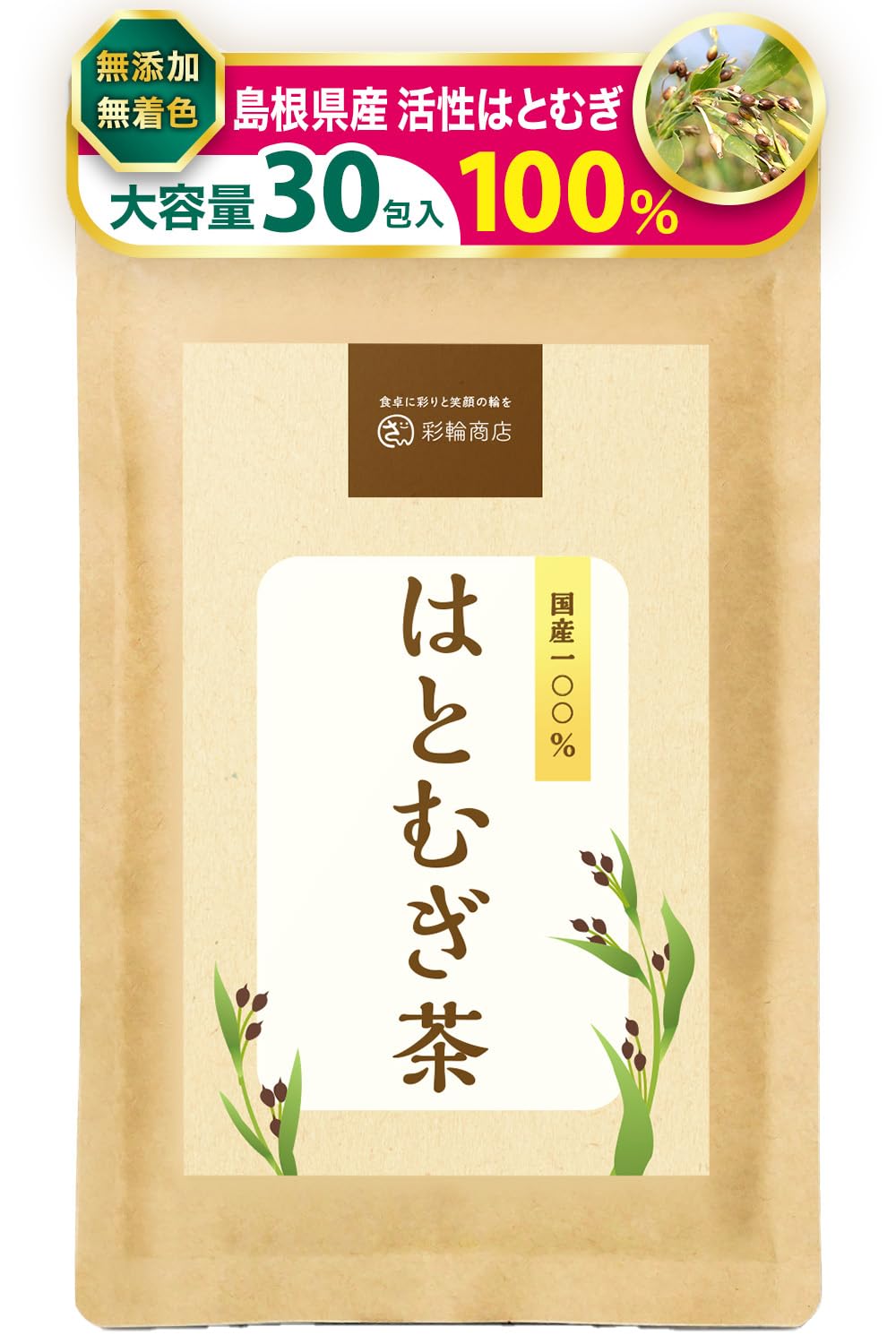 商品名:彩輪商店 活性はとむぎ茶 国産100% ハトムギ茶 はとむぎ ティーバッグ 無添加 ハトムギ 鳩麦茶 残留農薬検査済み ノンカフェイン 30包