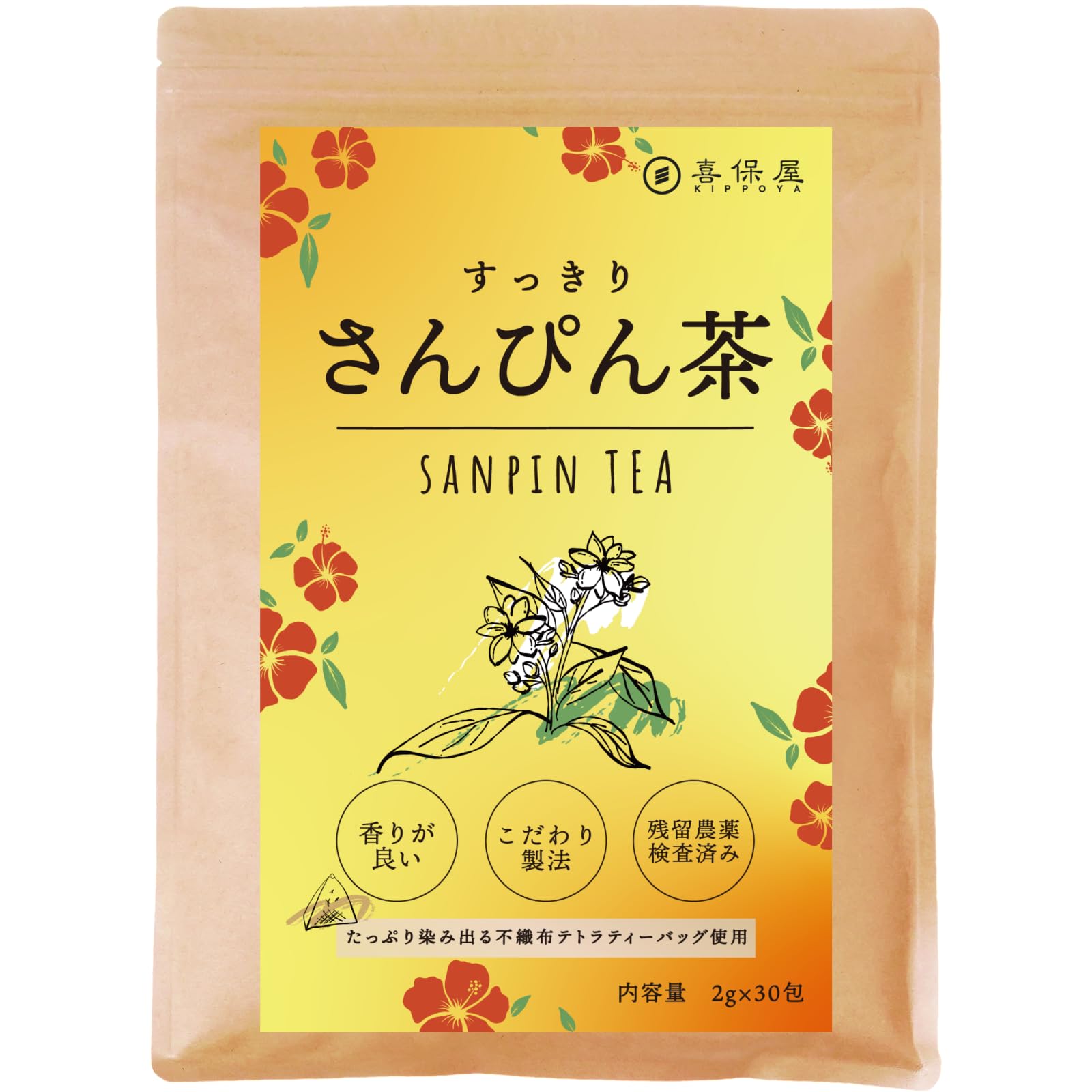 商品名:喜保屋 すっきり さんぴん茶 【厳選した素材/国内製造】 2g×30包 ティーバッグ 残留農薬検査済み 水出し可能 ジャスミン茶
