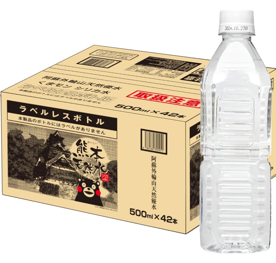 商品名:シリカ水 くまモンの天然水 (阿蘇外輪山) ラベルレス 500ml 42本 シリカ 軟水 国産 PFOS PFOA PFAS 検査済み 検出限界以下