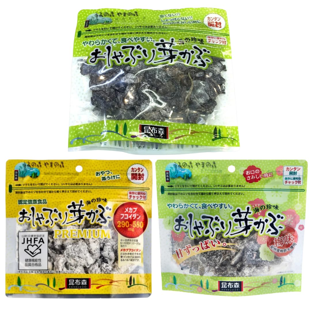 昆布森 おしゃぶり芽かぶプレミアム めかぶ メカブ フコイダン豊富 おやつ (各1袋, ノーマル・プレミアム・梅味)
