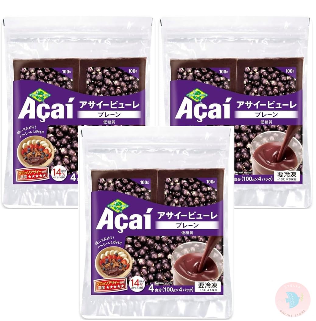 フルッタフルッタ アサイー パルプ (ピューレ) 冷凍 400g 3個セット プレーン FRUTA FRUTA オリジナルショップカード付き