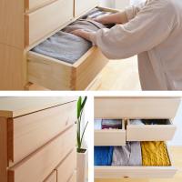 | 仕様 | ■引出仕様:アリ組み ■天板小口に3mm厚ひのき板張り ■一番下の深引出しはフルオープンレール付き ■使用している木材、接着剤はホルムアルデヒド放散等級F☆☆☆☆のものを使用していますが、メーカー判断により表示をF☆☆☆としています。 ■上下重ね仕様(ネジ止め) |