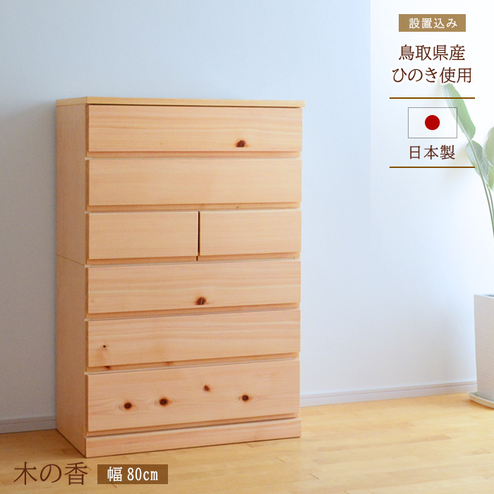 チェスト 幅80cm 木の香 ハイタイプ 完成品 国産 日本製 天然木 引き出し 引出し 小物 収納 箪笥 タンス たんす 子供 シンプル 木製 ナチュラル NA 料無料