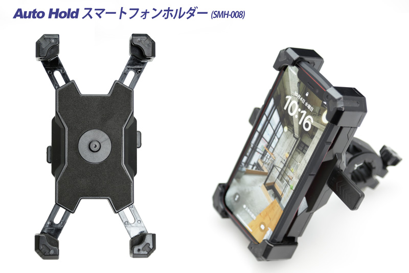 | ■バイク・自転車・ATVなどのハンドルにスマートフォンをマント出来るスマホホルダー(SMH-008) ハンドルハンドルバー(ほとんどのサイズに適合)に、スマホホルダーを設置することが可能です。 オートロック機能も装備しておりますので、スマートフォンをホルダーに押し当て、センターのボタンを押すだけで、四隅がロックされます。ロックのコツは少しスマホを押し当てながら、左右上下に緩みが無いかズラすと隙間なくホールドされやすいです。 ・四隅をガッチリホールド ・スマートフォンをホルダーに押し当てるだけで四隅が自動的にホールド!オートロック機能 ・ハンドル設置・バックミラー設置の2Way設置 |