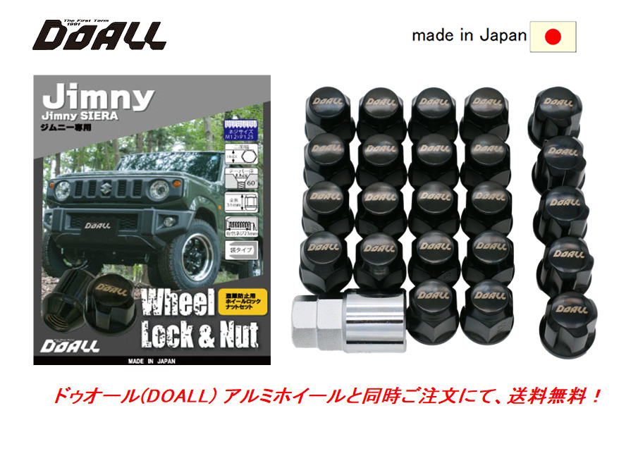 | DOALL ロック&ナットセット+背面ロック&ナットセット 品番DNJ01 | M12×1.25 [全長 約31mm] テーパー/19HEX | ブラック ドゥオール ロゴ入り | ナット18個+ロックナット5個 +キーアダプター1個 | |