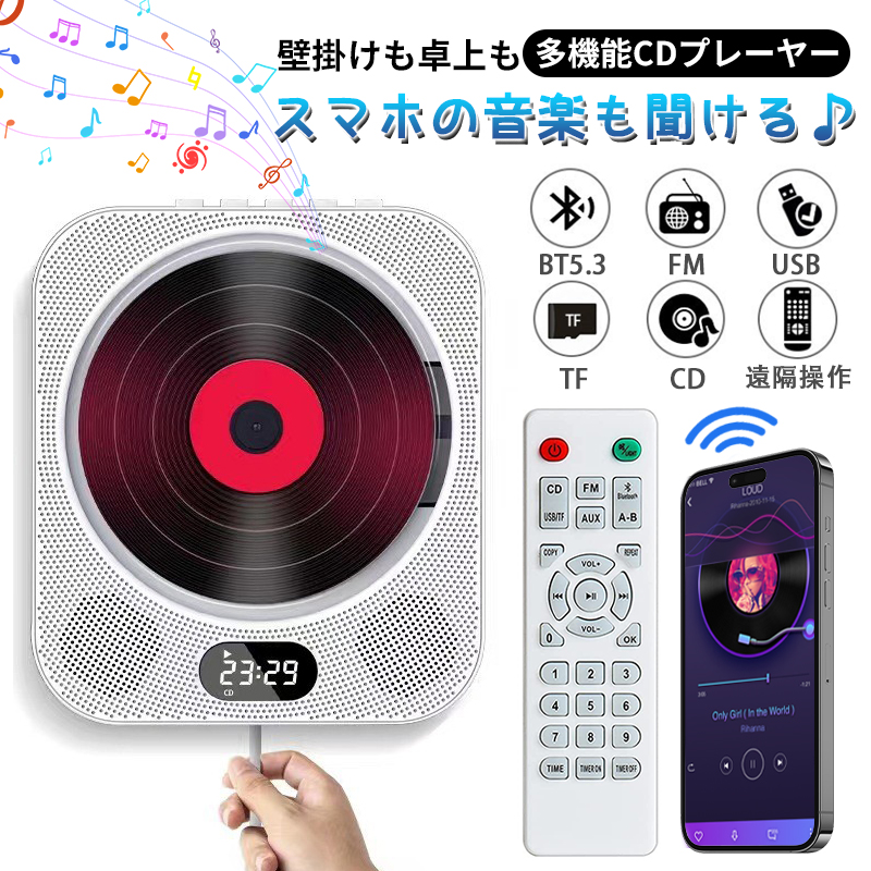 CDプレーヤー cdラジカセ FM/CD/USB/AUX等対応 A-BA-Bリピート 再生/音楽鑑賞/語学学習/胎教 リモコン対応 卓上&壁掛け式