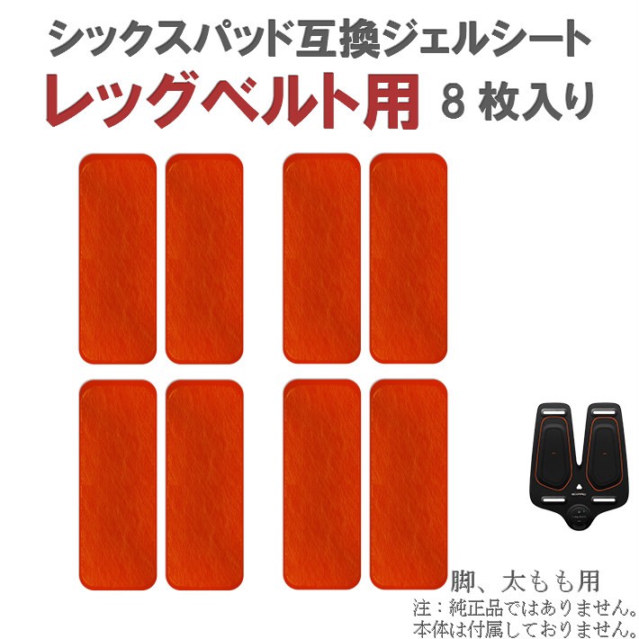 シックスパッド ジェルシート レッグベルト用 8枚入り 互換 交換 (SIXPAD Leg Belt) 脚 太もも用 あし 足 ふくらはぎ 腕 等 パット 高電導 EMS