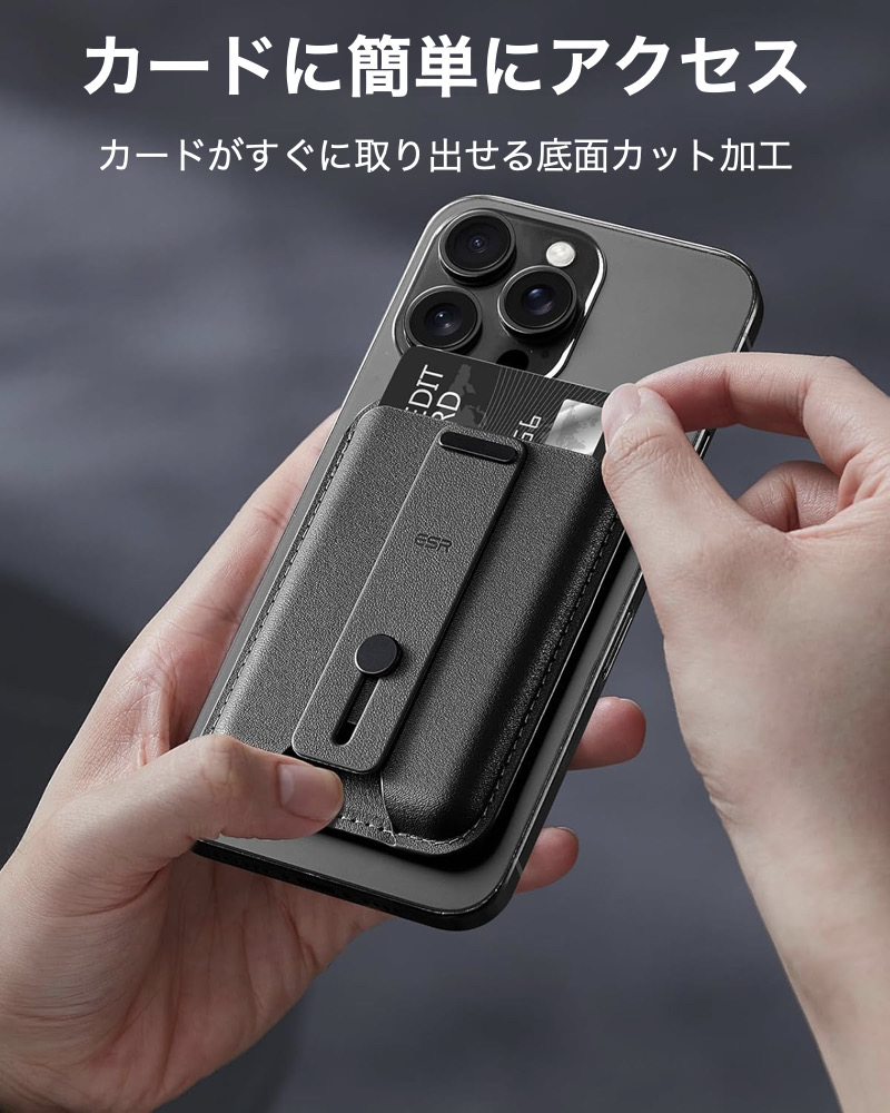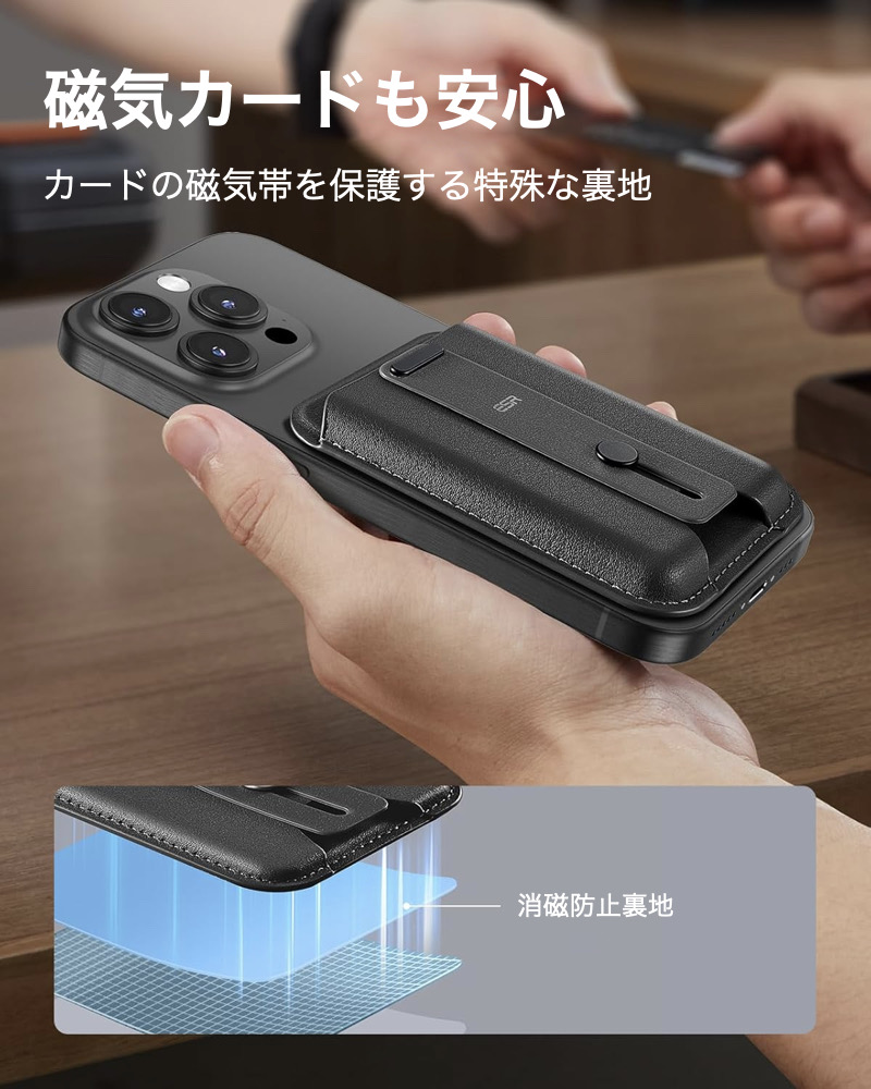 | MagSafeウォレット | 【強力な磁気吸着】 強力な内蔵磁石は、公式の磁気ウォレットよりも2.5倍の磁力があり、アイテムのセーフティが確保され、ポケットから取り出した際にも外れる心配がありません。 【全てをポケット収納】 コンパクトにスマホの背面にシームレスに取り付けられ、ホルダー内のカードストッパーにより、1〜3枚のカードを均等にしっかり収納できます。 【しっかりグリップ】 背面のフィンガーループは、外出先でも快適なグリップを提供し、横向きスタンドとしてハンズフリー視聴も可能です。 【カードに簡単アクセス】 特別に設計された底部の切り込みに指を押し込むだけで、必要な時に必要なカードが取り出せ、ウォレットを取り外す必要がありません。 【対応機種】: iPhone 16、16 Plus、16 Pro、16 Pro Max、iPhone 15、15 Plus、15 Pro、15 Pro Max、iPhone 14、14 Pro、14 Pro max、14Plus、iPhone 13、13 Pro、 13 Pro Max、iPhone 12、 12 Pro、12 Pro Max iPhone 13/12 miniは対応しておりません。 |