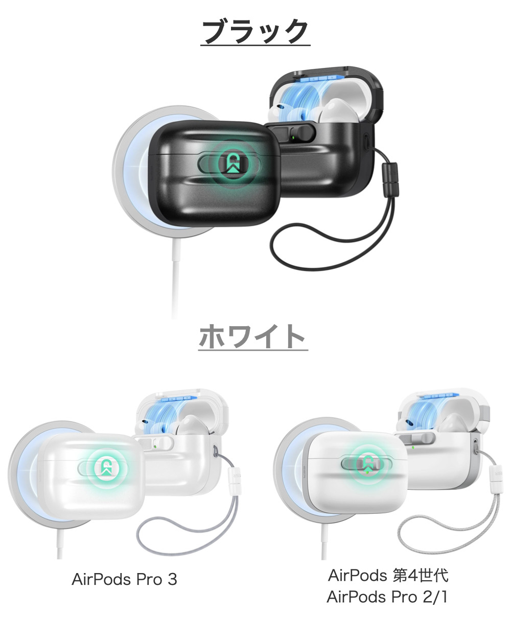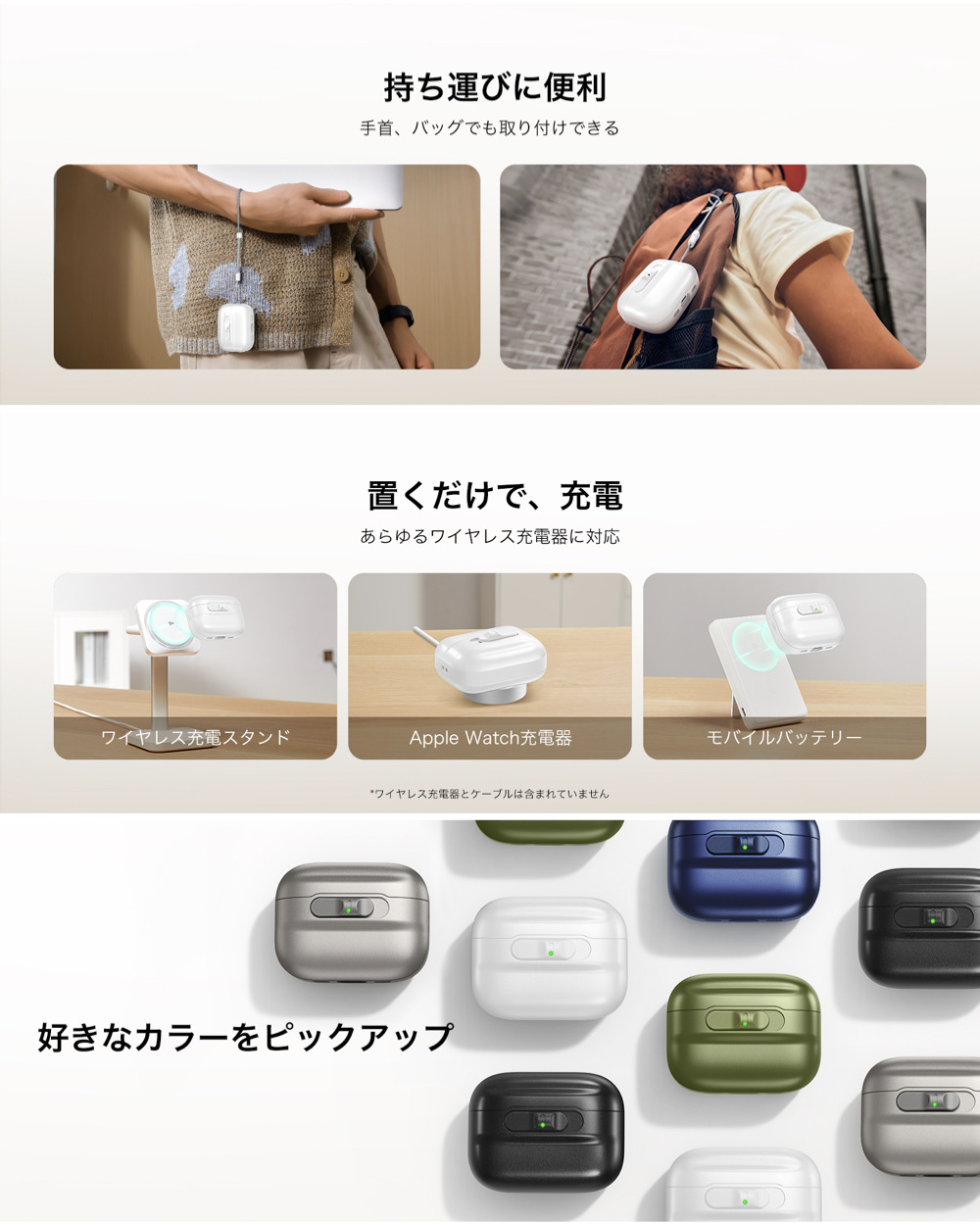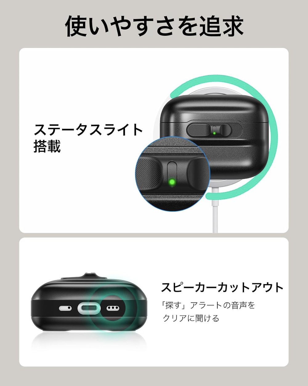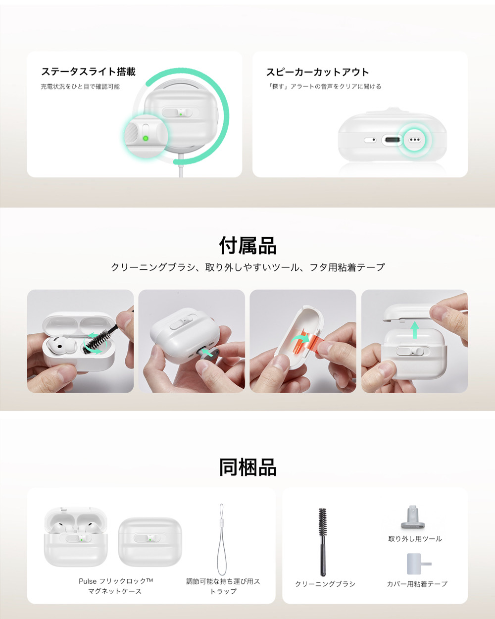 | 対応機種 | ・AirPods Pro 第2/1世代 (2023/2022/2019) ・AirPods 第4世代(2024)(USB-C) |