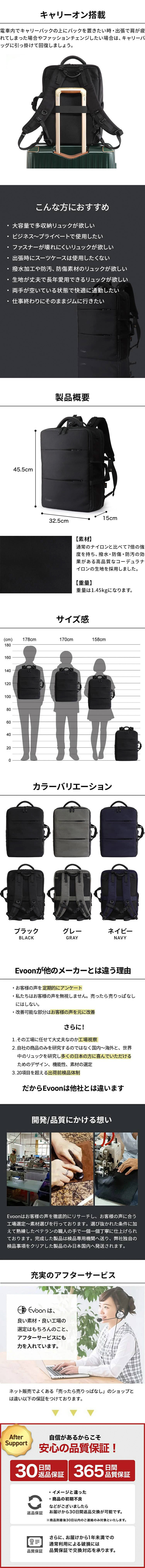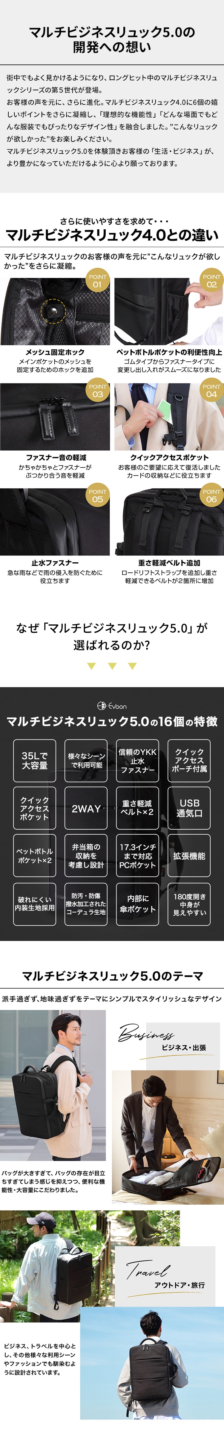 公式 Evoon マルチビジネスリュック5.0 大容量 22L~35L 拡張機能 多収納 防犯 撥水 出張 旅行 通勤 通学 メンズ 17.3インチPC対応