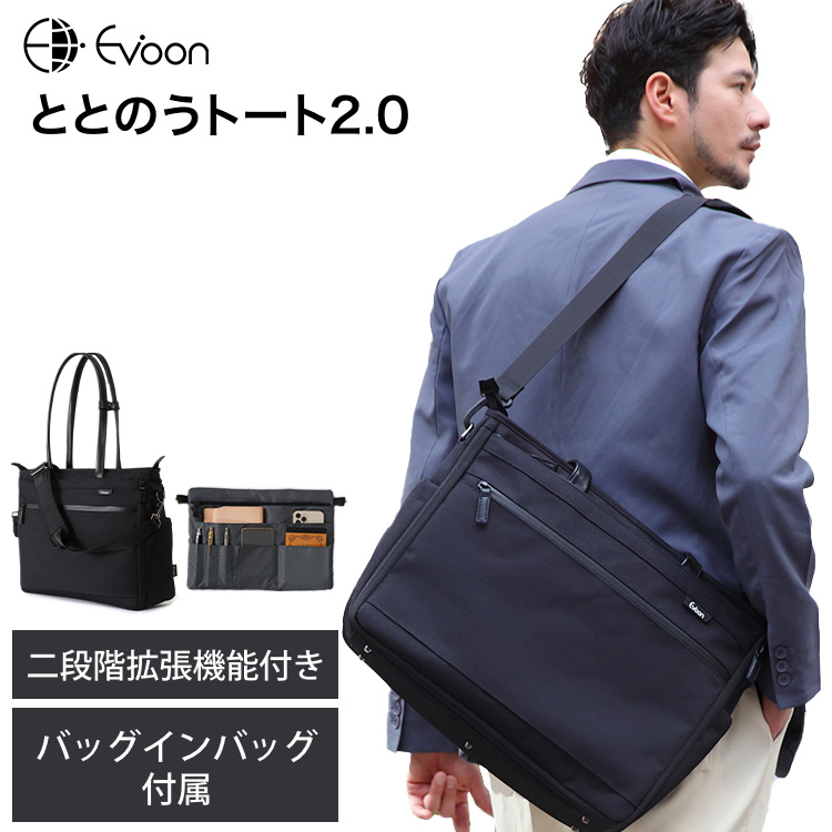 公式 Evoon ととのうトート2.0 二段階拡張機能 3WAY 防犯機能 TSA バッグインバッグ 多収納 大容量 PC収納 防傷 防汚 撥水 ショルダー 肩掛け 底鋲 自立 メンズ