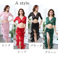 ベリーダンスセット ステージ衣装 イベント レッスン着 2点セット トップス/スカート 練習用 演出服 発表会 2style 4カラー入荷