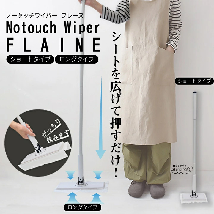 モップ フローリングワイパー 本体 手が汚れない ノータッチワイパー ショート ロング 掃除 クリーナー 挟む 雑巾 回転 モップクリーナー 省スペース おしゃれ