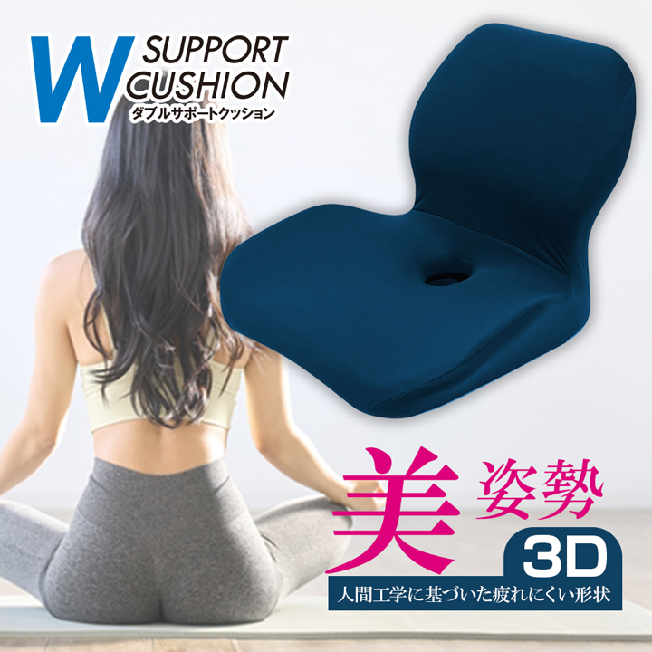 ダブル サポート クッション カバー付 イス用クッション 骨盤サポート チェア 美しい姿勢 姿勢矯正 骨盤の歪み 正しい姿勢 腰痛改善 猫背改善