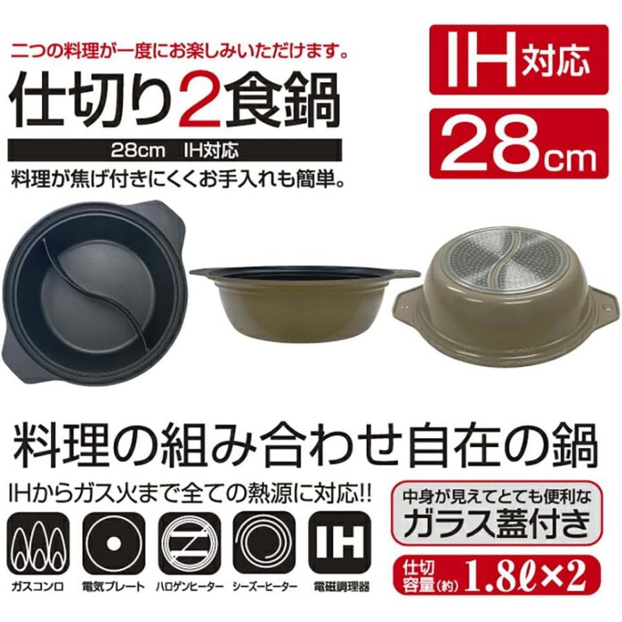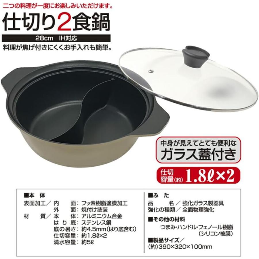 卓上鍋 仕切り鍋 2色鍋 贅の頂 IH対応 直火 ガス火 26cm 28cm 約3〜4人用 ガラス蓋付き セット 大きいサイズ 大容量 両手鍋 2食鍋 しゃぶしゃぶ 火鍋 2種類 鍋