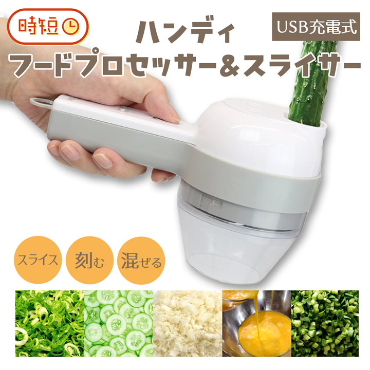 時短 料理 フードプロセッサー スライサー ハンディ コードレス 手軽 USB充電式 片手で簡単 みじん切り スライス 刻む 混ぜる