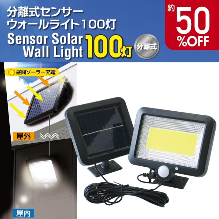 人感センサーライト モーションセンサー付 照明 LED 100灯 ナイトスター パネル 分離型 防犯 IPX4 防雨タイプ ソーラー 充電式 配線不要