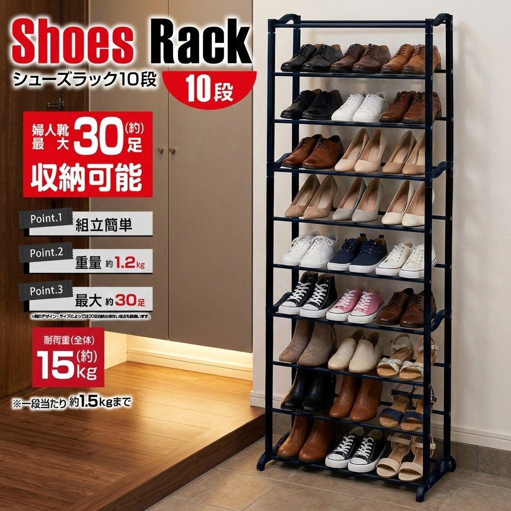シューズラック 10段 スリム 省スペース 最大30足 玄関収納 大容量 おしゃれ シューズボックス 軽量 工具不要 組み立て簡単 薄型 シンプル 無地