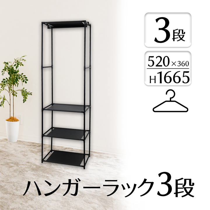 シンプル ハンガーラック 3段 幅52 奥行36 高さ166 ラック 棚 収納 コンパクト おしゃれ 組立簡単 ワードローブ フリーラック 安い