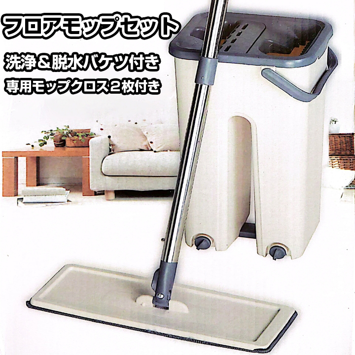 モップ 水切りバケツ付き 360°回転 フロアモップセット モップセット 手洗い不要 水拭きモップ クリーナー フローリングモップ