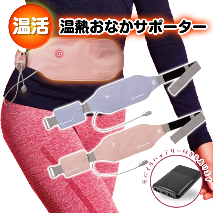 女性の冷えや生理痛、腰痛に効果的な温熱サポーターです。市販のモバイルバッテリーで、