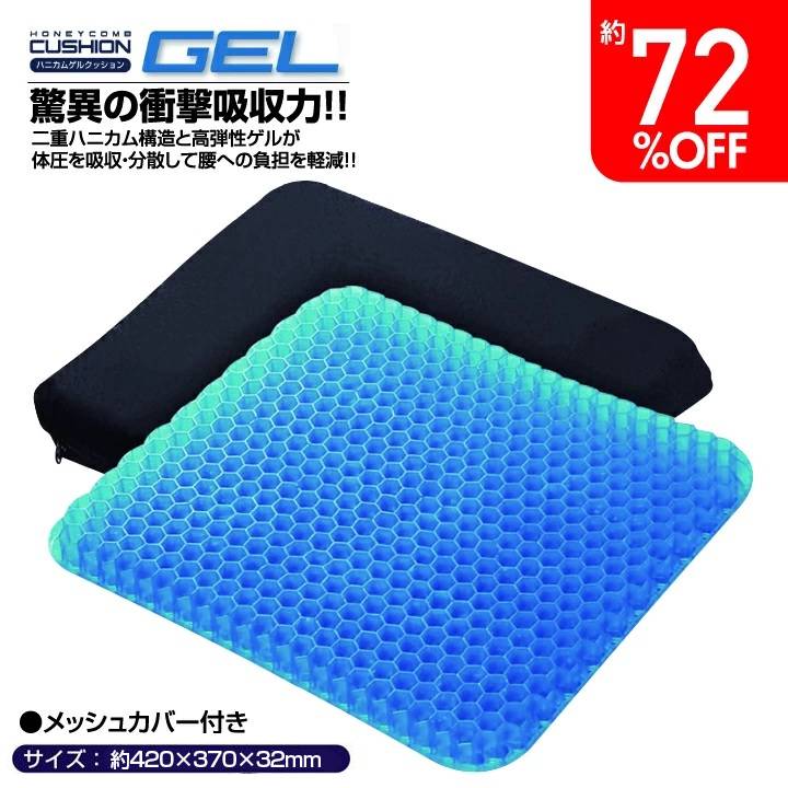 ゲルクッション 大きめ ハニカム ゲル クッション ダブル ブルー 42cm ジェルクッション ハニカム構造 カバー付き 座布団