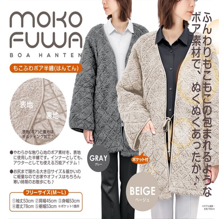 やわらかな触り心地のボア素材を表地に使用した半纏です