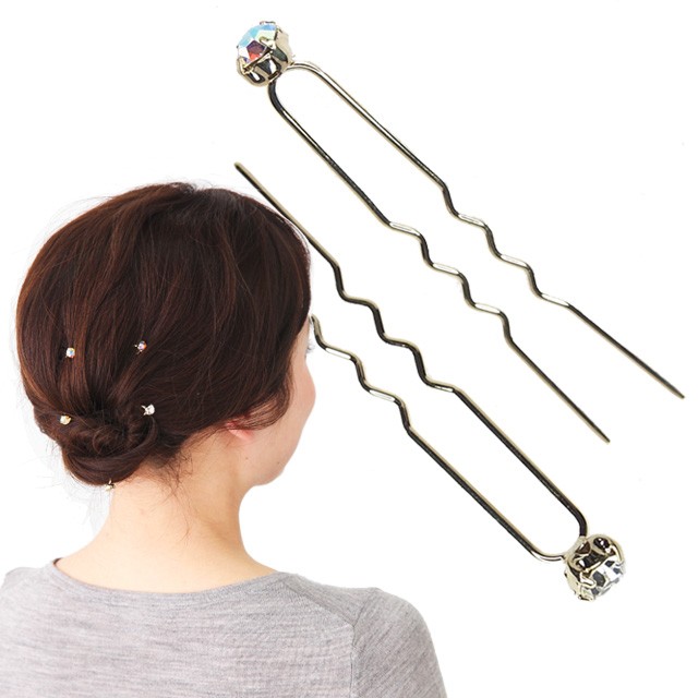 Uピン クリスタル 6mm ゴールド金具 つくりはしっかりしています ヘアアクセサリー