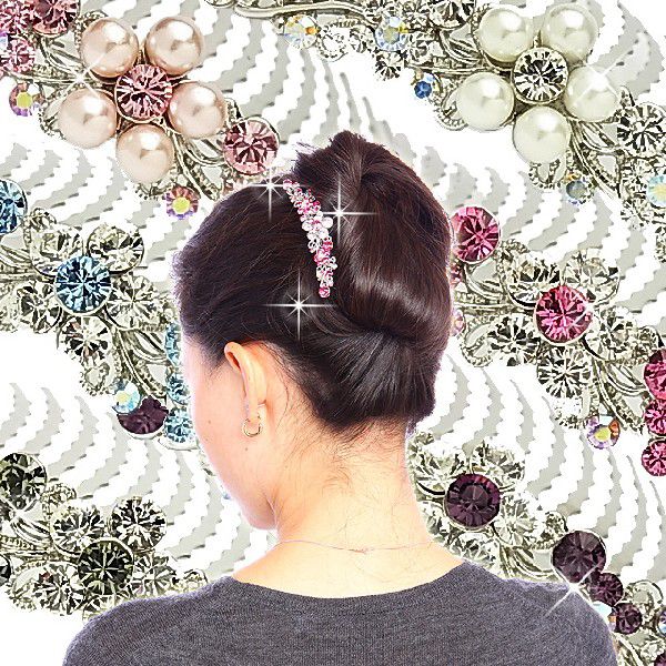夜会巻きコーム Mサイズ 16本脚 ラウンドフラワー ラグジュアリースワロフスキー使用 ヘアアクセサリー
