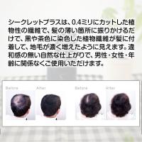 シークレットプラスは、0.4ミリにカットした植物性の繊維で、髪の薄い箇所に振りかけるだけで、黒や茶色に染色した植物繊維が髪に付着して、地毛が濃く増えたように見えます。