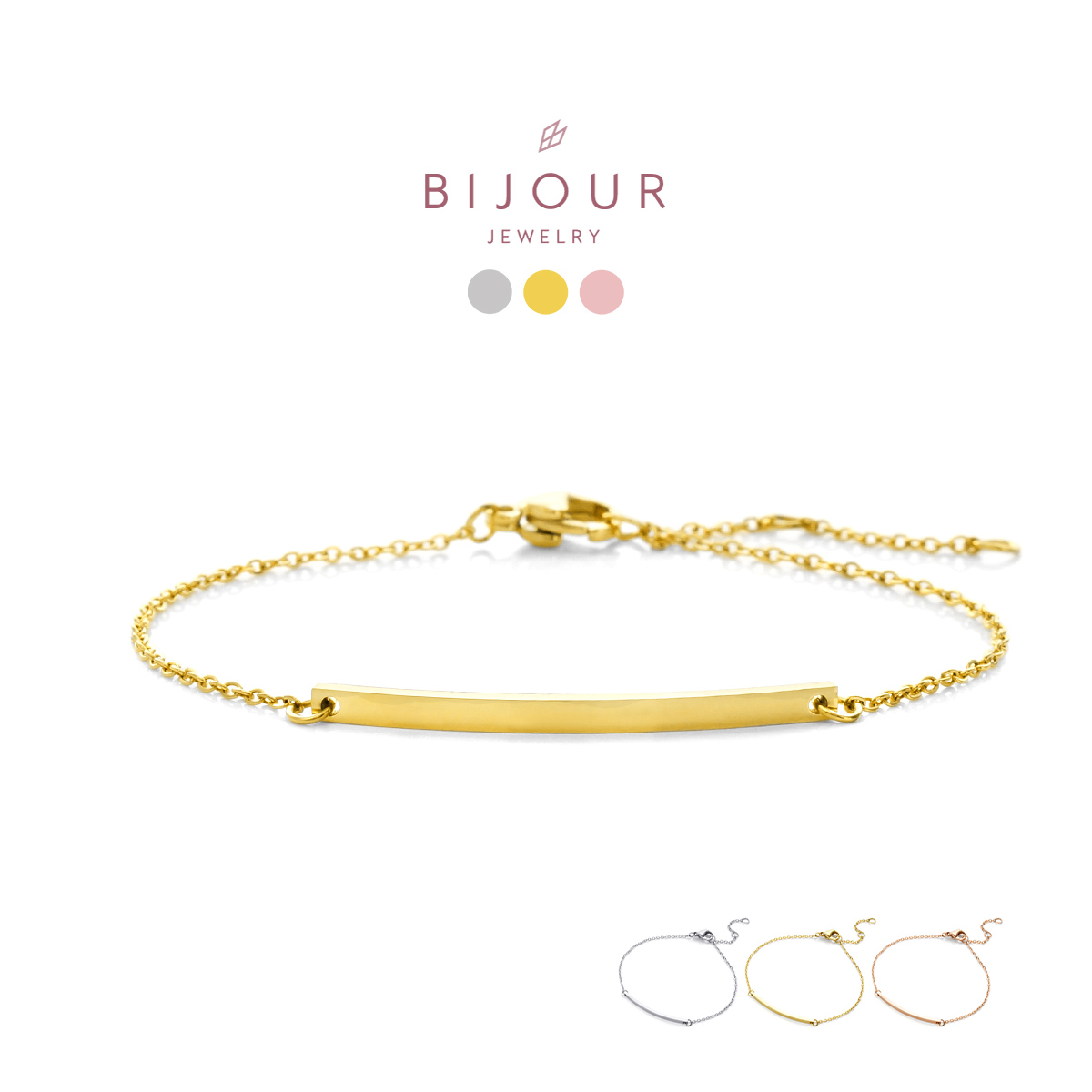 金属アレルギー対応 つけっぱなしOK ブレスレット ステンレス シンプル Bijour ビジュール bib0110 バーモチーフ
