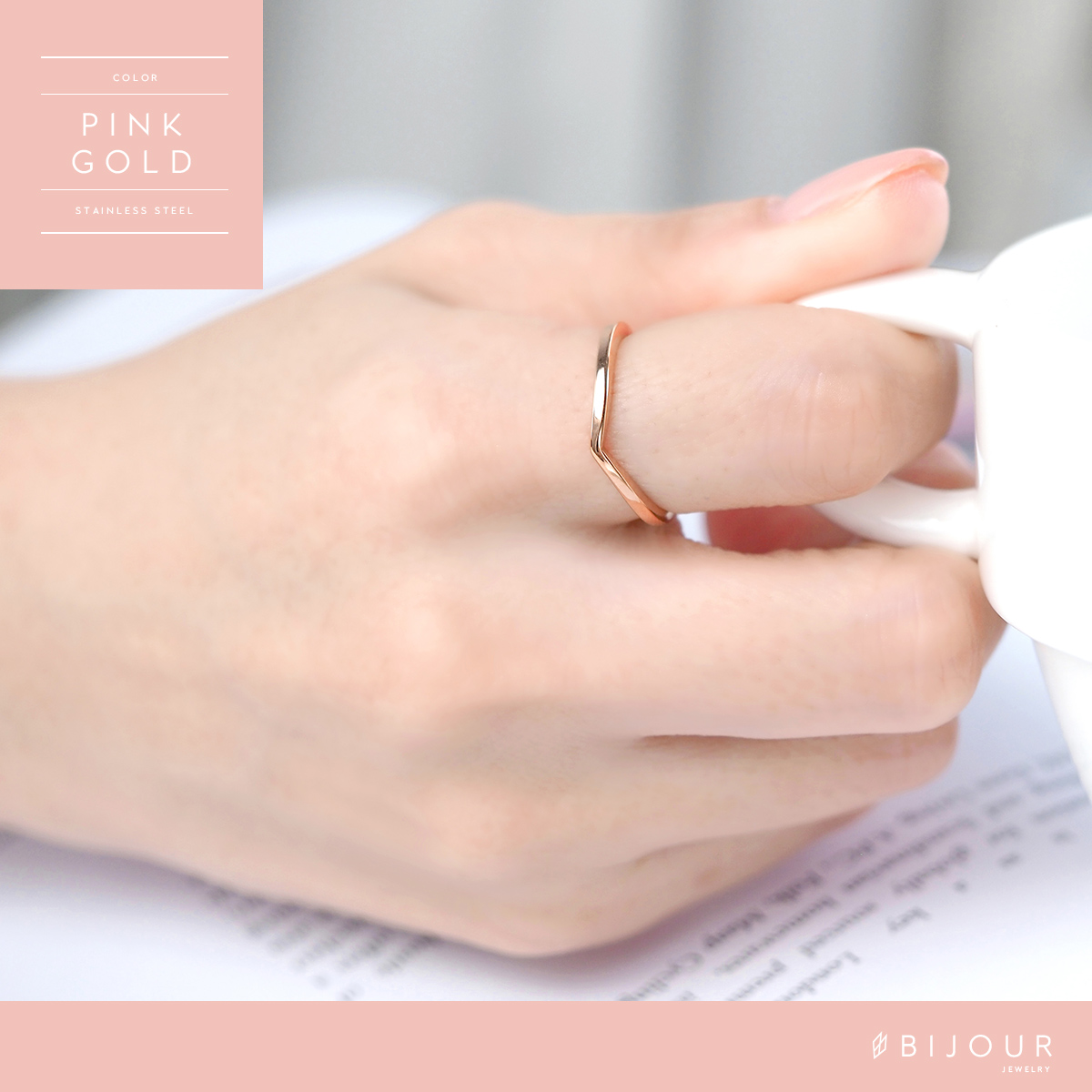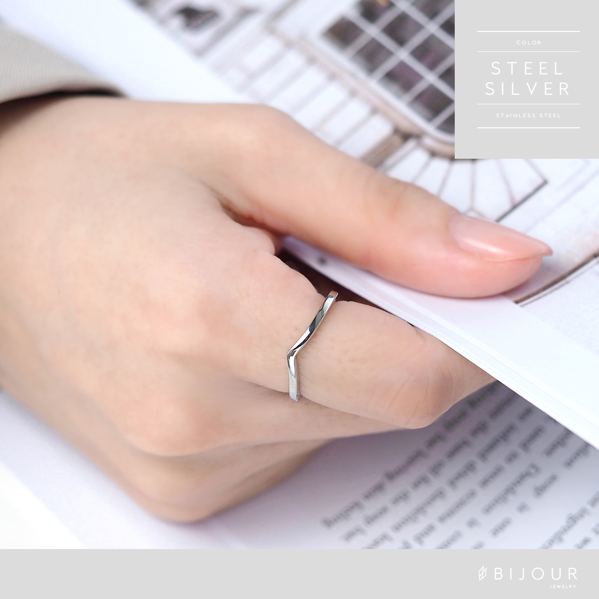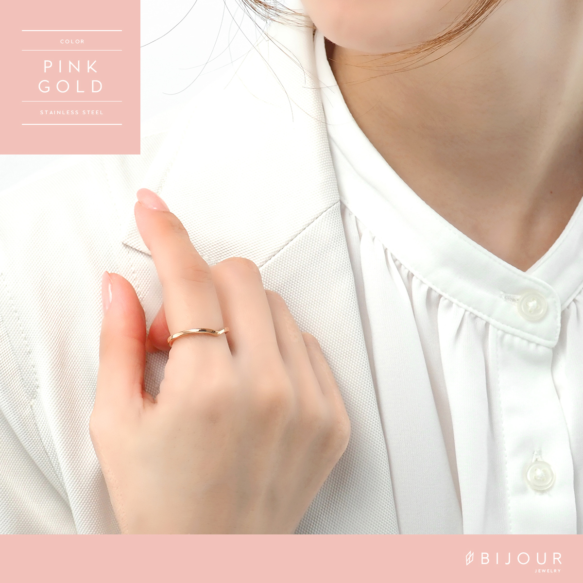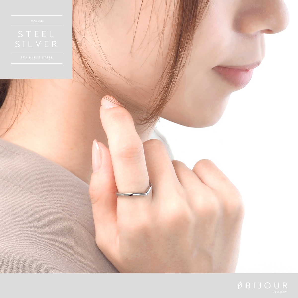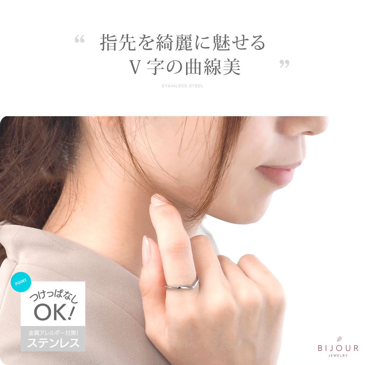 金属アレルギー対応 つけっぱなしOK リング ステンレス シンプル Bijour ビジュール biri0114 V字 曲線