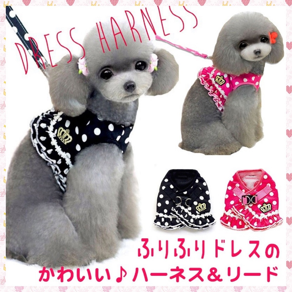 ★ ひらひらのギャザースカート×ドット柄がCuteな♪ハーネス&リードのセットです♪