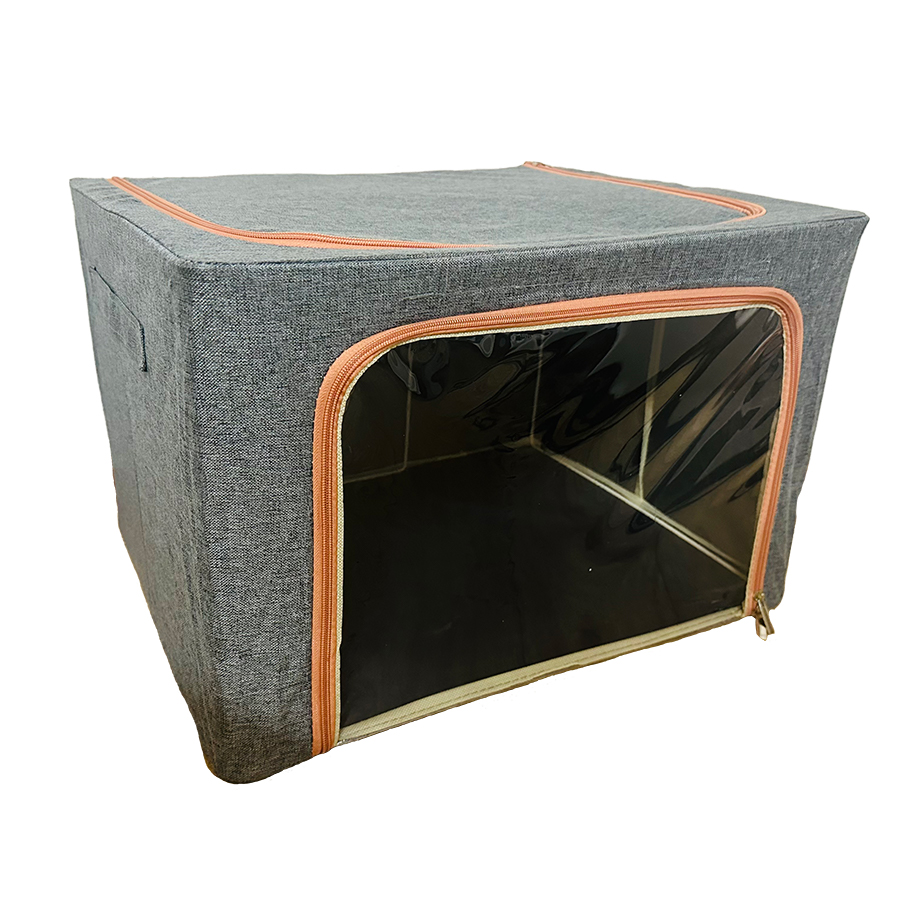 【耐摩耗性】:麻布素材の耐摩耗織物はペットに捕まりにくく、耐久性が強い。製品は密閉空間であるが、麻布の材質は優れた通気性を持ち、使用後は干すことができる。内部には鋼製の骨組みがあり、使わずに折りたたむことができ、保管しやすい。