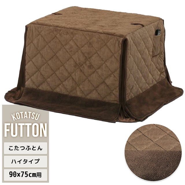 90×75天板対応 ダイニングこたつ布団 単品 コーデュロイ ブラウン ハイタイプこたつ布団 長方形 フランネル 省スペース 薄掛け スリット 2人 コンパクト
