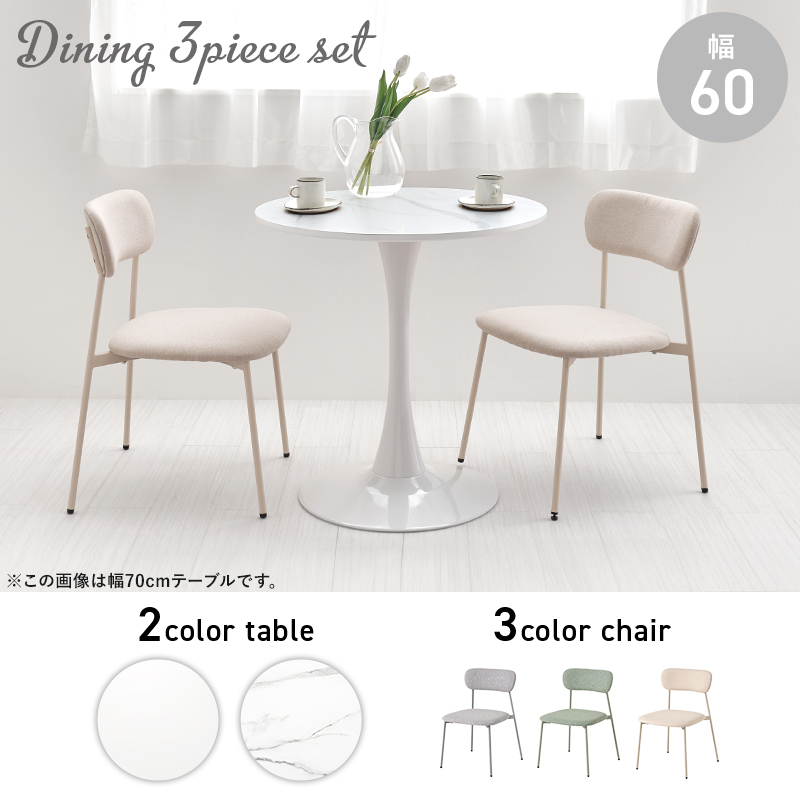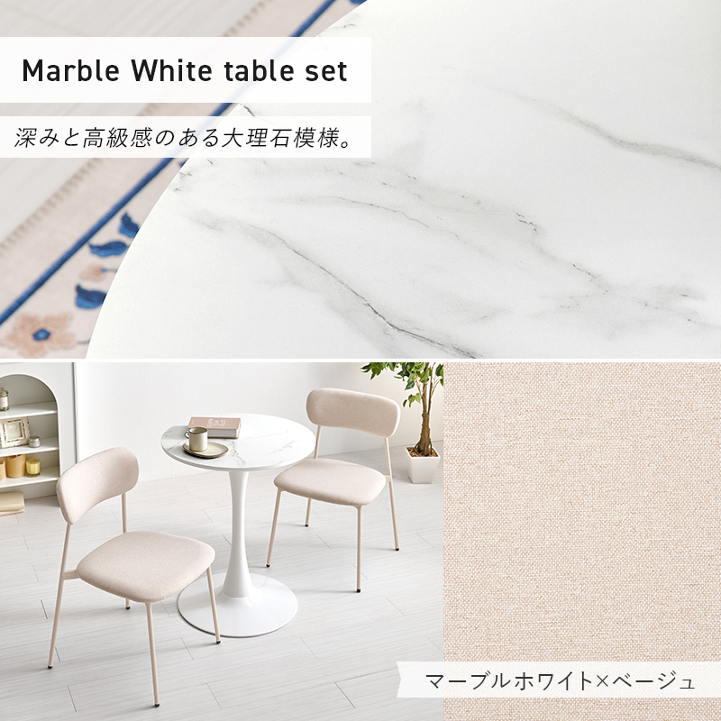 3点セット カフェテーブルセット 直径60cm 丸 おしゃれ 2人 コンパクト 2人掛け 2人用 ホワイト 白 大理石調 椅子付き 可愛い