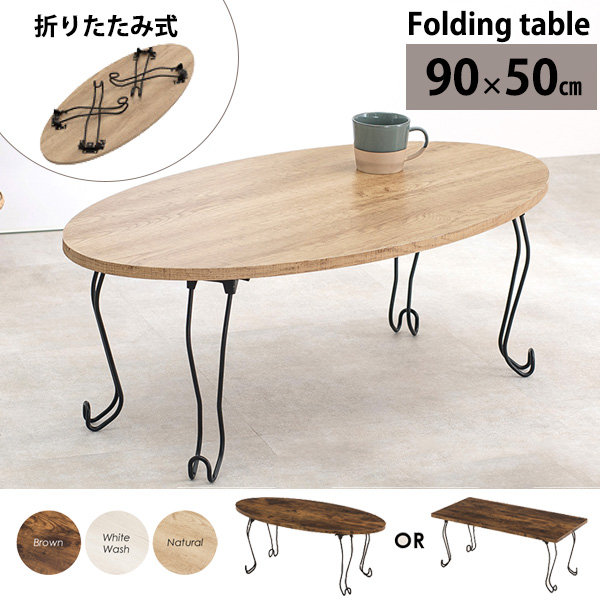 猫脚&折れ脚 古木調 センターテーブル 90×50 長方形 丸型 楕円形 オーバル ローテーブル 折り畳み おしゃれ ヴィンテージ リビングテーブル 一人用